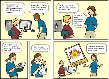 This cartoon explains why Commons does not accept "noncommercial" licenses. Click to view the full-size image.
