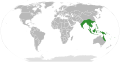 English: The distribution of the plant genus Alocasia, according to [1].