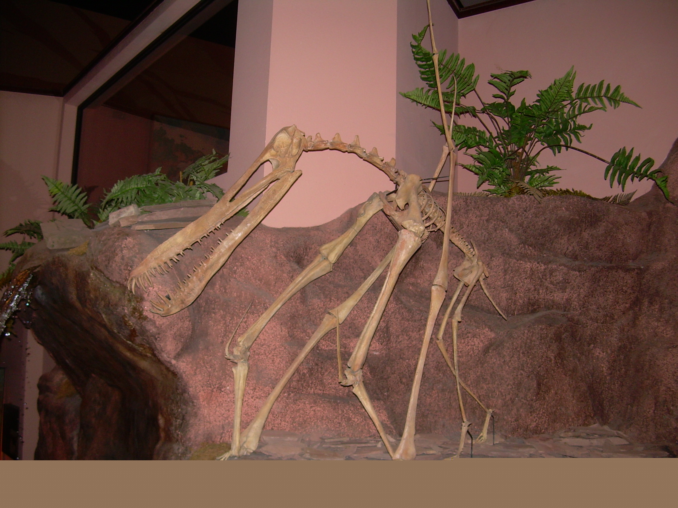 English: Photograph of a fossil cast of an Anhanguera skeleton taken at the North American Museum of Ancient Life.