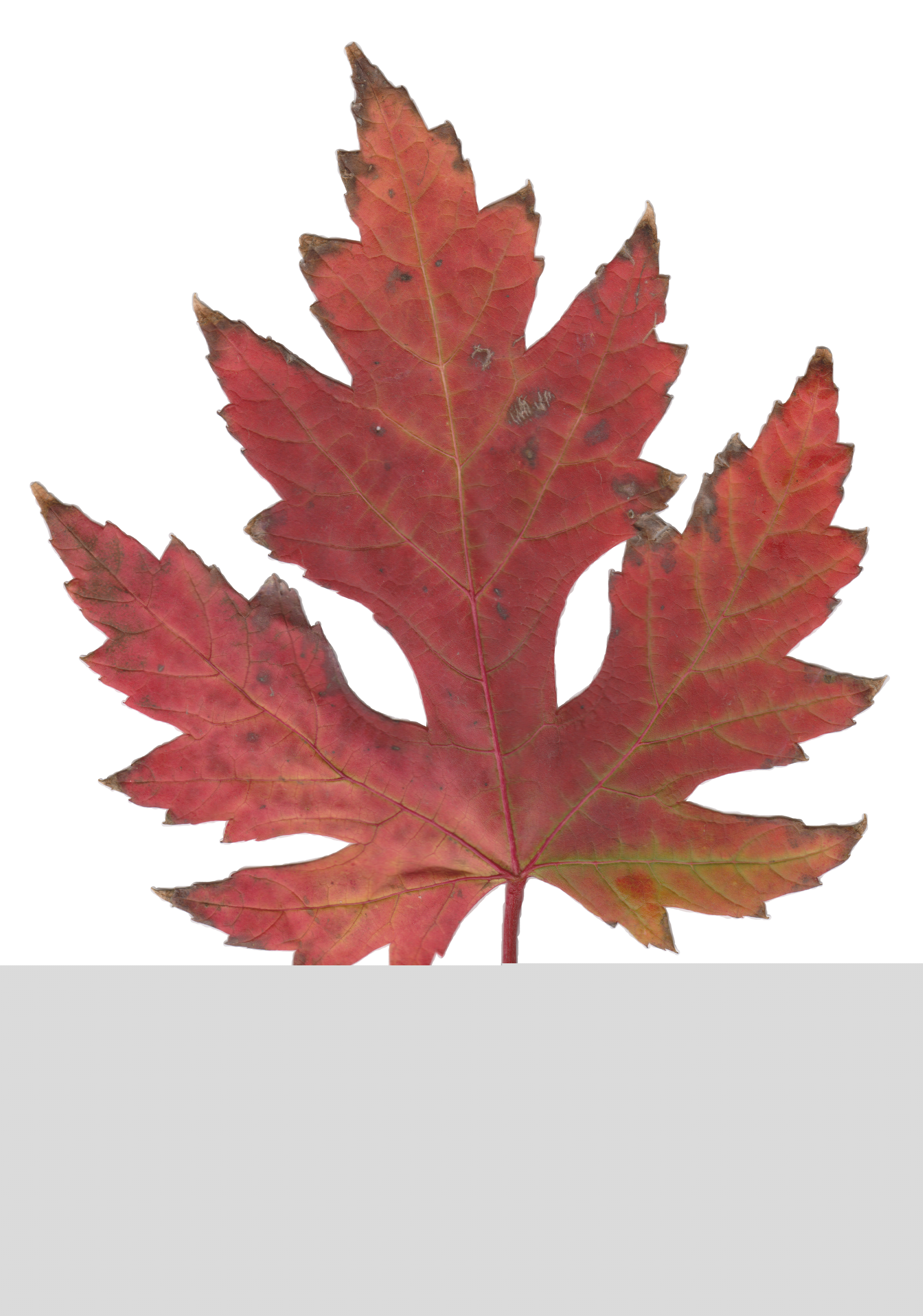 English: Scan of a leaf of a Silver Maple (Acer saccharinum L.) changing colors during autumn. The leaf was obtained on the campus of Brigham Young University.