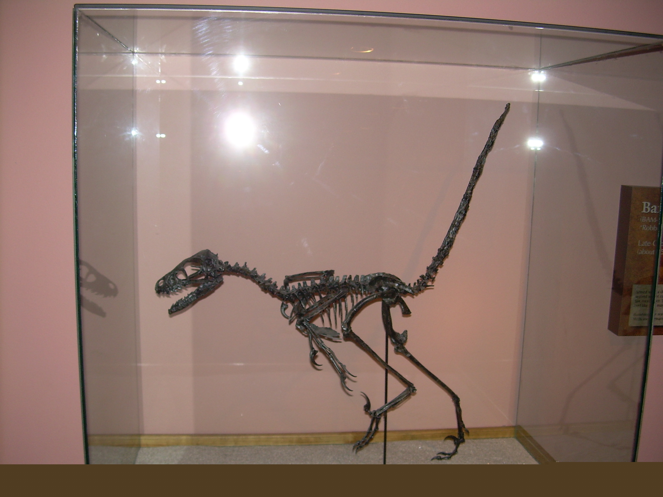23:48, 4 January 2009 | ![]() | 2,272 × 1,704 (965 KB) | Ninjatacoshell (talk | contribs) | {{Information |Description={{en|1=Photograph of a fossil cast of a ''Bambiraptor feinbergi'' skeleton taken at the North American Museum of Ancient Life.}} |Source=Own work |Author=Ninjatacoshell |Date=January 2009 |Permission= |ot |