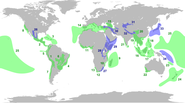 13:59, 20 July 2010 | ![]() | 4,378 × 2,435 (700 KB) | Ninjatacoshell (talk | contribs) | {{Information |Description={{en|1=The twenty-five biodiversity hotspots (<font color="red">red</font>) as indicated in '''Myers, N., ''et al''.''' (2000) "Biodiversity hotspots for conservation priorities." ''Nature'' '''403:'''853–858. {{doi|10.103 |