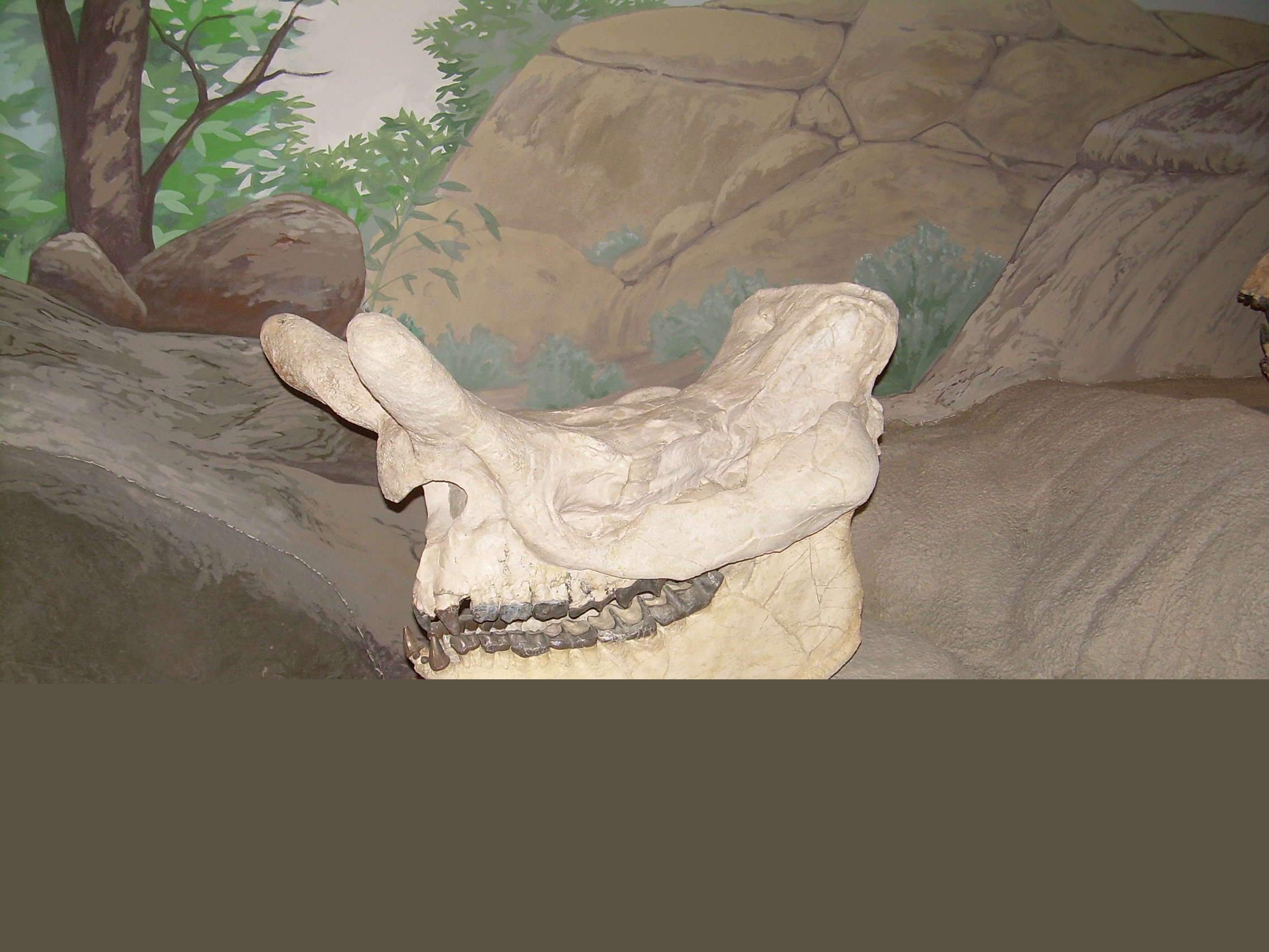 English: Photograph of a fossil cast of a Brontotherium skull taken at the North American Museum of Ancient Life.