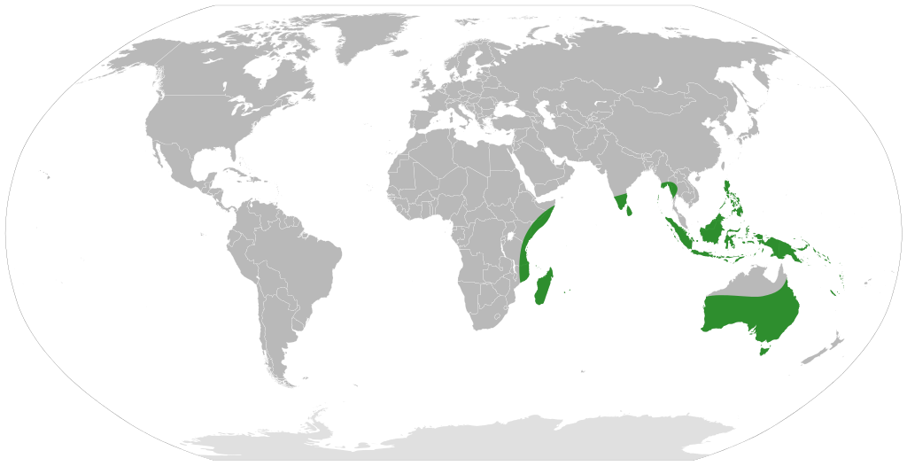 English: Distribution of the genus Casuarina, based on Silvester WB. (1977). "Dinitrogen fixation by plant associations excluding legumes." in Hardy RFW, Gibson AH (ed.), A Treatise on Dinitrogen Fixation. Section IV: Agronomy and Ecology. John Wiley and Sons, New York, p. 141–190.