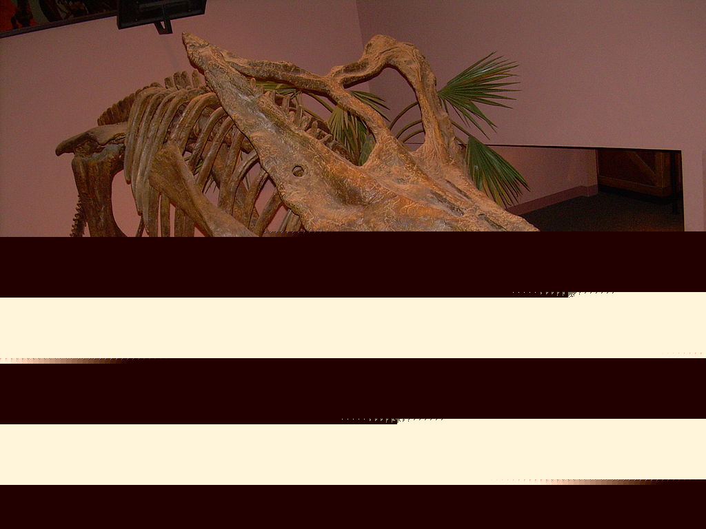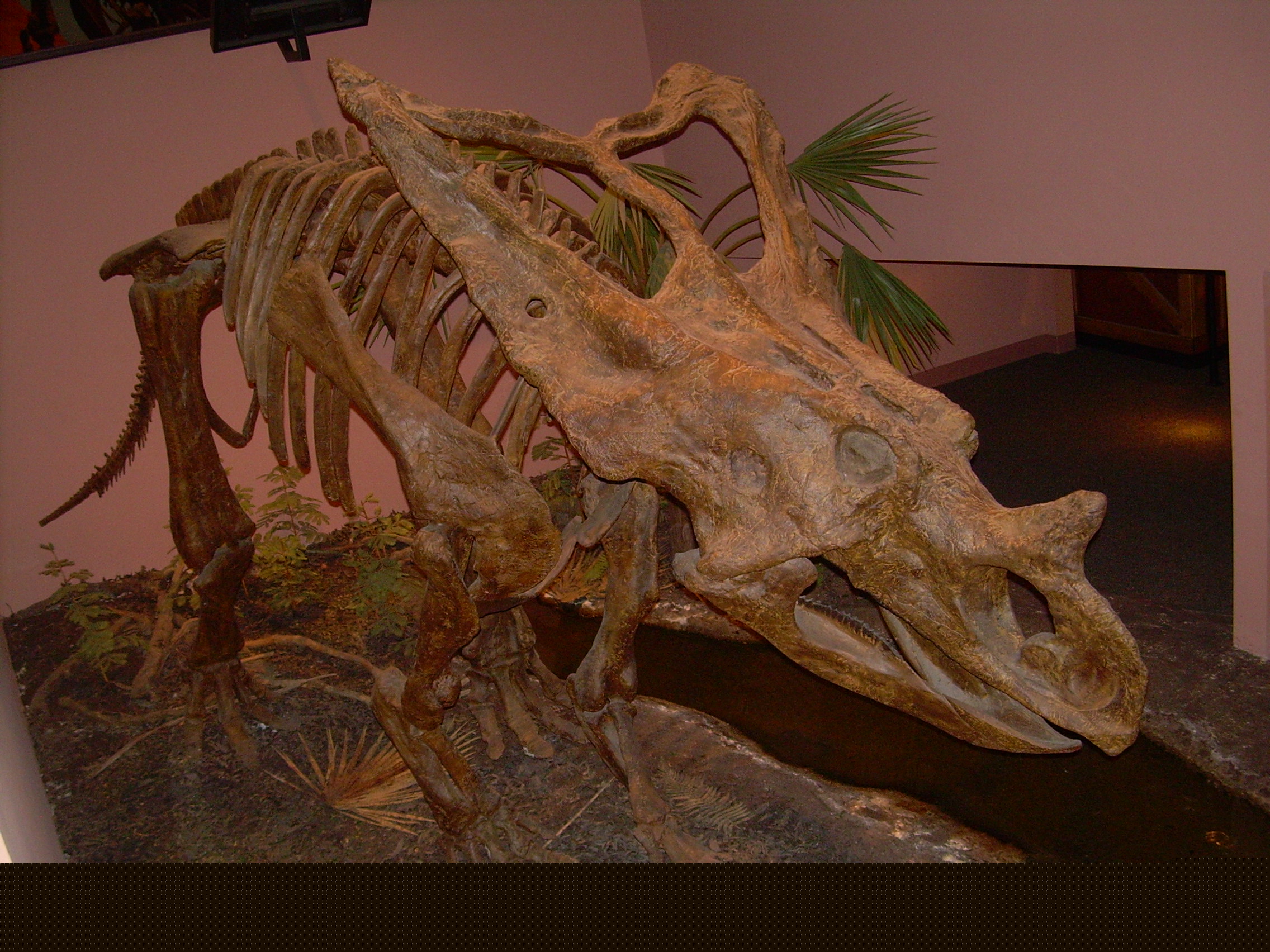 English: Photograph of a fossil cast of a Chasmosaurus skeleton taken at the North American Museum of Ancient Life.