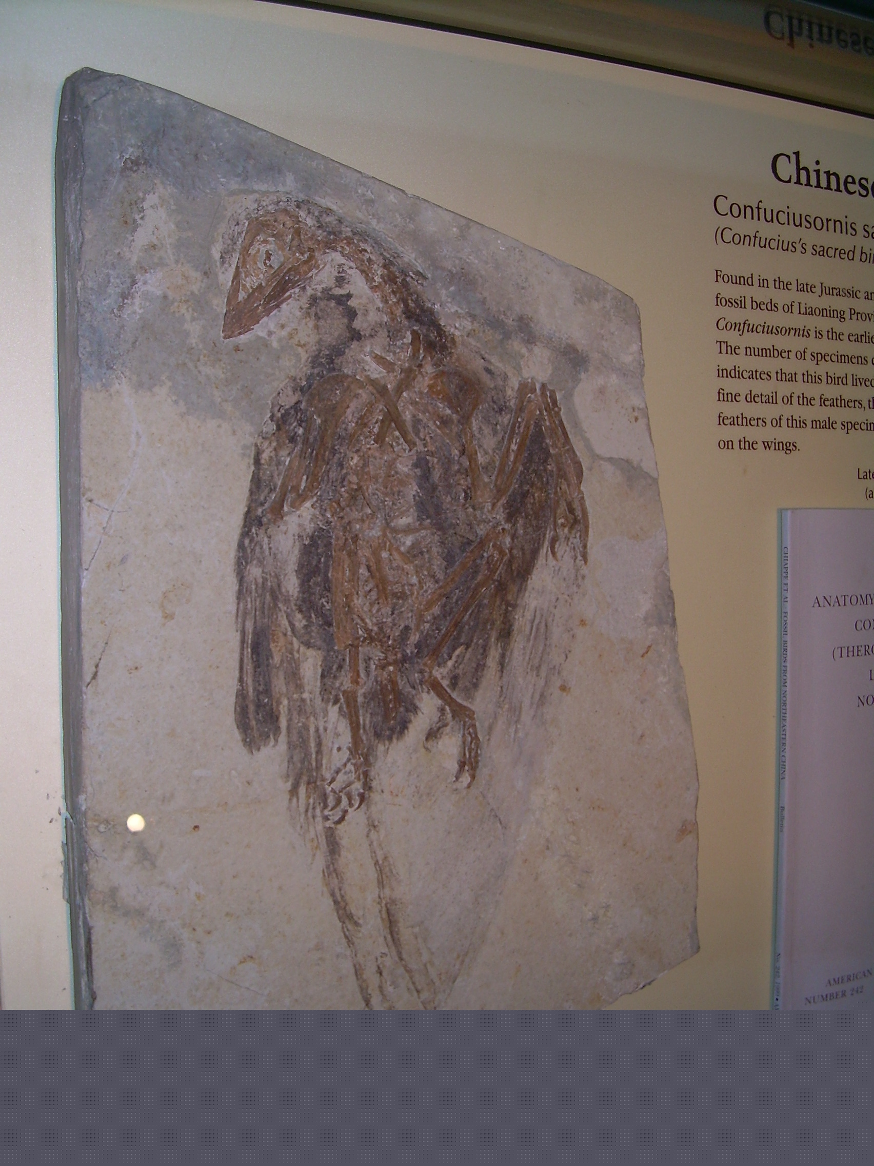 01:00, 5 January 2009 | 1,704 × 2,272 (1,000 KB) | Ninjatacoshell (talk | contribs) | {{Information |Description={{en|1=Photograph of a fossil cast of a ''Confuciusornis sanctus'' fossil taken at the North American Museum of Ancient Life.}} |Source=Own work |Author=Ninjatacoshell |Date=January 2009 |Permission= |oth |