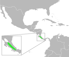 The distribution of the genus Crepidophryne. Data from Mulcahy, D.; Williams, T.; Mendelson, III, J; and Sites, J. (2008) "Phylogenetic Relationships Among Mesoamerican Bufonids." Poster presented at the 2009 Joint Meeting of the American Society of Ichthyologists and Herpetologists. Abstract available here, p. 58. |
