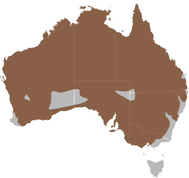 English: The distribution of the Delma legless lizards (Genus Delma), based on doi:10.1080/10635150390250974 and The Australian Reptile Online Database.