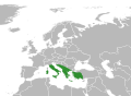 English: The distribution of the plant genus Dracunculus, according to [1].