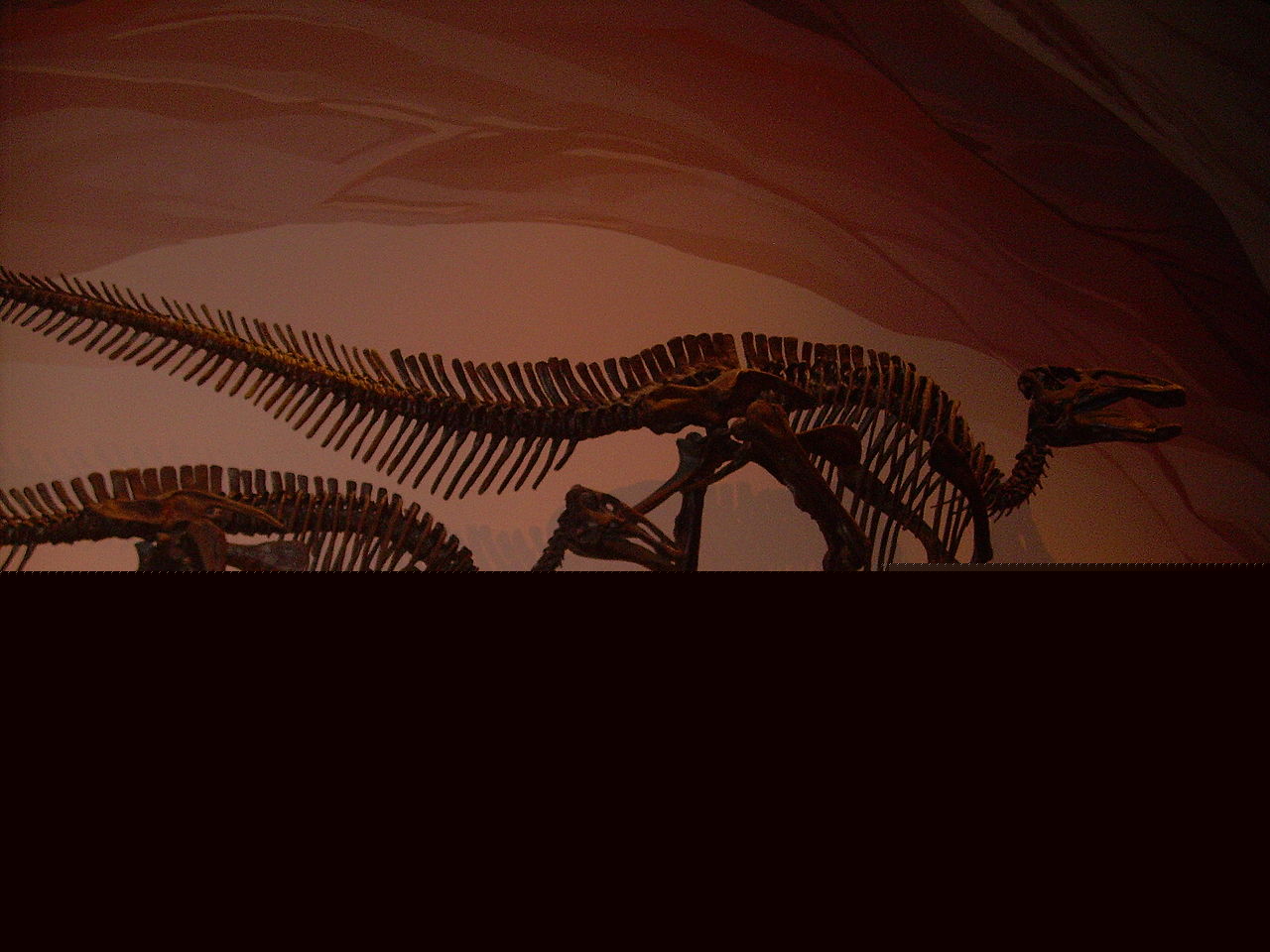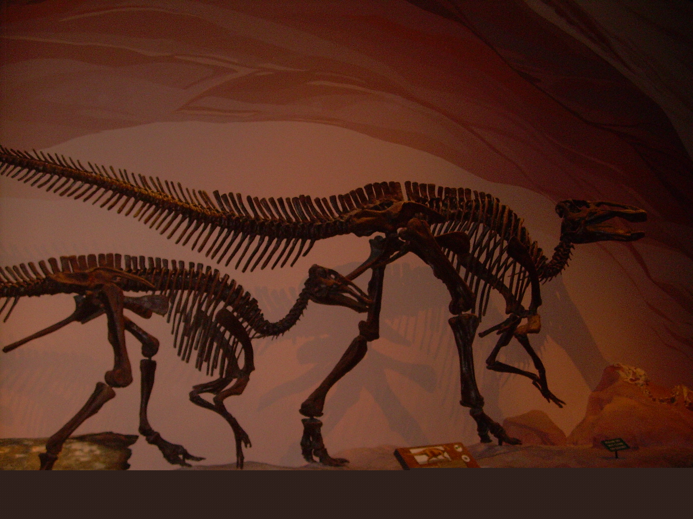 English: Photograph of fossil casts of Edmontosaurus skeletons taken at the North American Museum of Ancient Life.