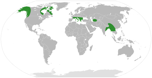 English: Distribution of the silverberries (genus Elaeagnus), based on Silvester WB. (1977). "Dinitrogen fixation by plant associations excluding legumes." in Hardy RFW, Gibson AH (ed.), A Treatise on Dinitrogen Fixation. Section IV: Agronomy and Ecology. John Wiley and Sons, New York, p. 141–190.
