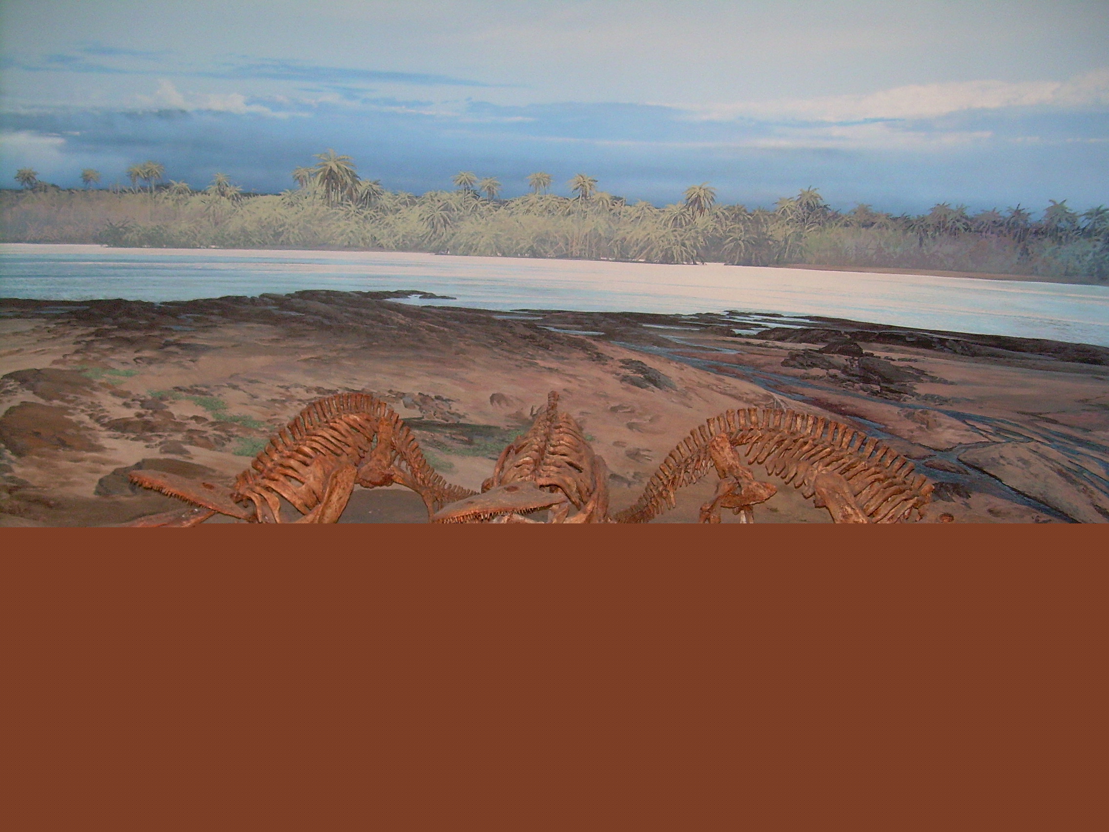 English: Photograph of fossil casts of Eryops megacephalus skeletons taken at the North American Museum of Ancient Life.