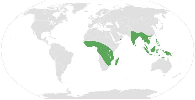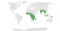 English: Distribution of plants found in the genus Exacum. Based on {{doi:10.1080/10635150590905867}}.