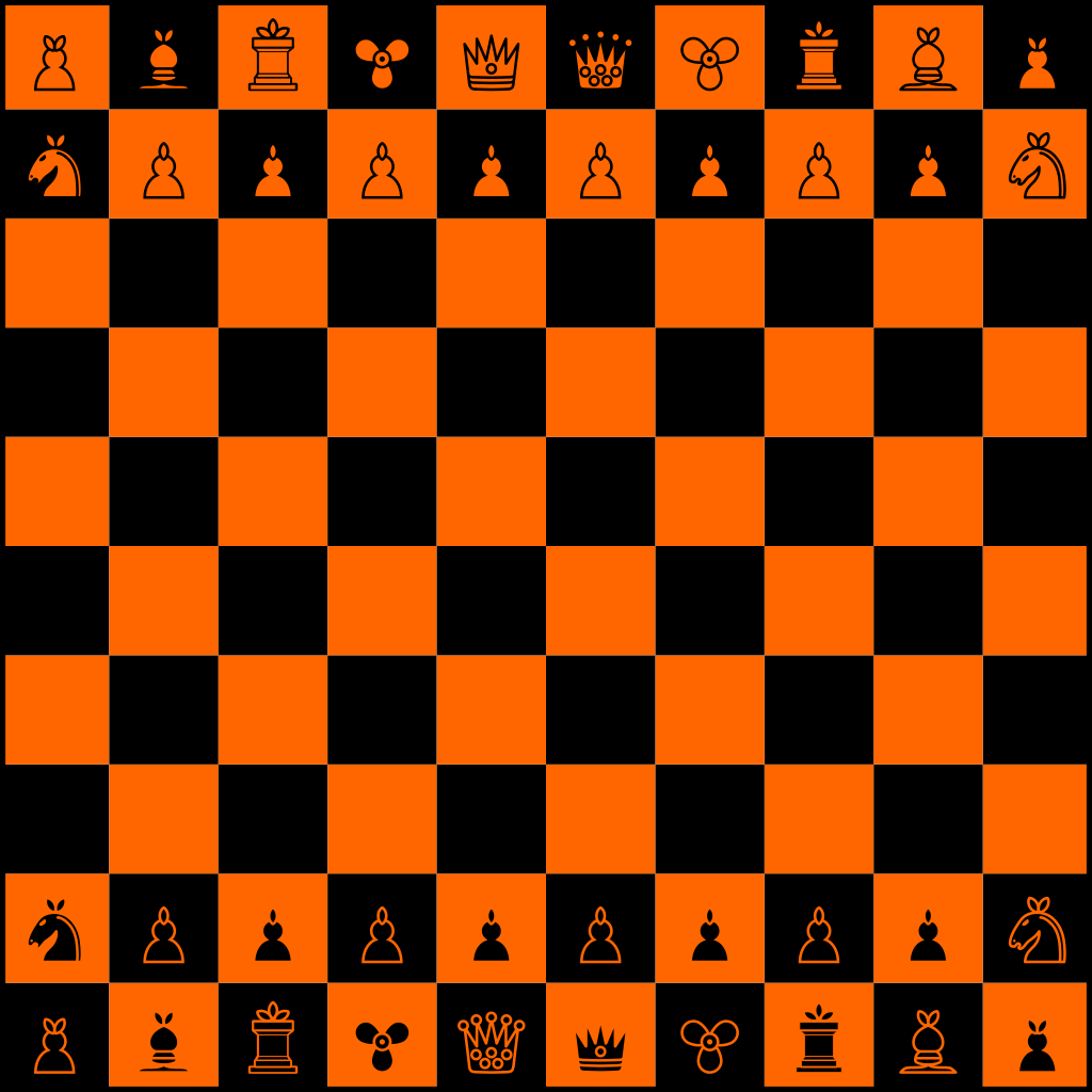 English: A diagram depicting the pieces and layout for the chess variant jetan which Edgar Rice Burroughs invented for his novel The Chessmen of Mars.