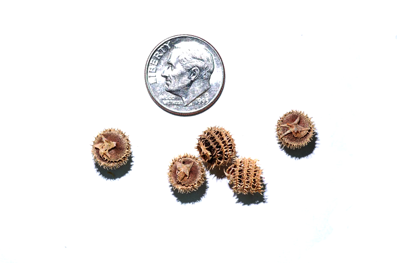 English: Seed pods of Medicago rotata next to a U.S. dime for scale.