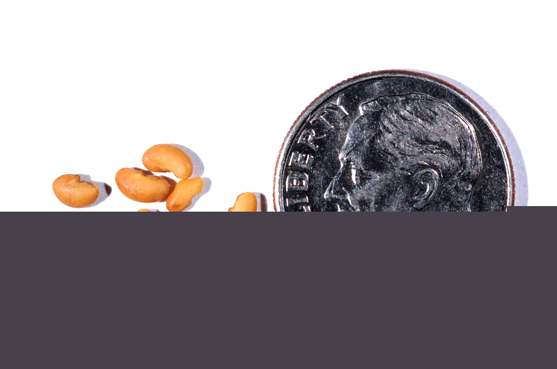 English: Seeds of Medicago rotata next to a U.S. dime for scale.