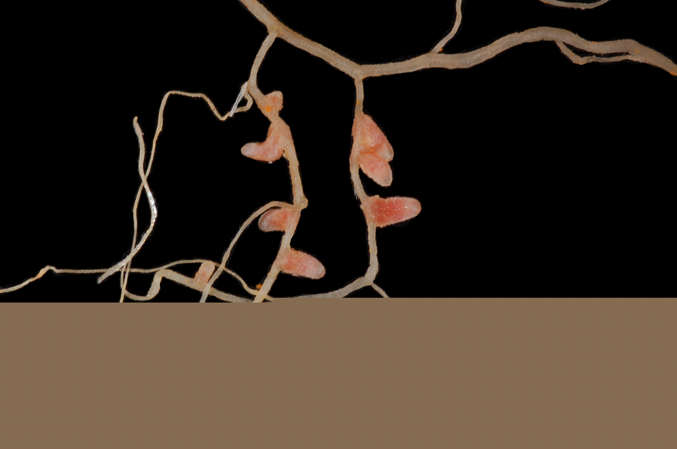 English: The root nodules of a 4-week-old Medicago truncatula A20 inoculated with Sinorhizobium meliloti.