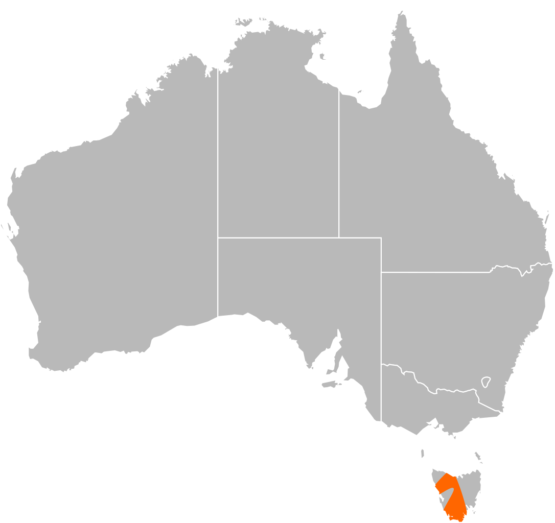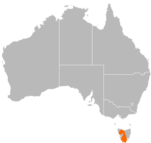 English: Distribution map of the Parastacoides crayfish species (after Crayfish Taxon Browser).
