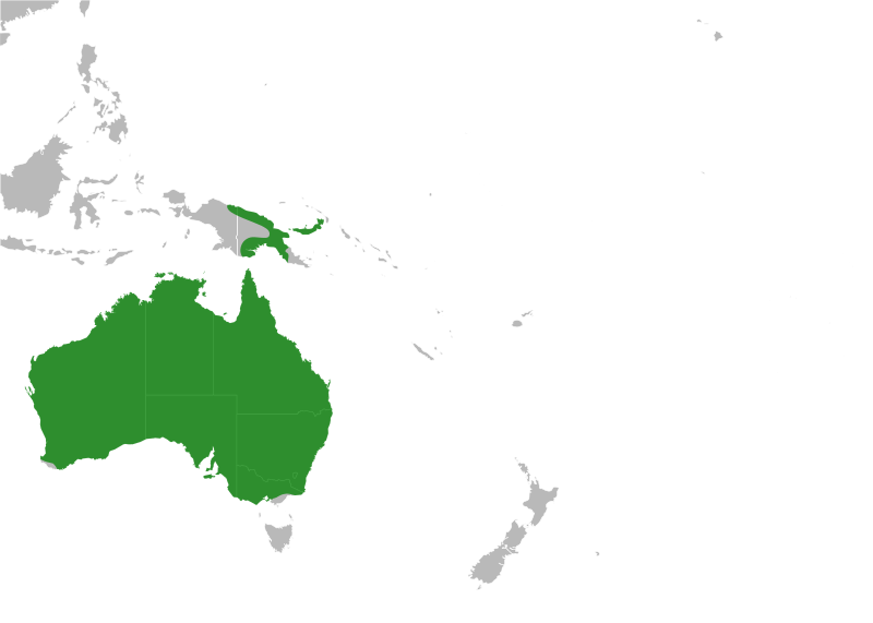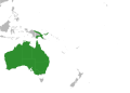English: Distribution of the Snake Lizards (family Pygopodidae), based on [1] and doi:10.1080/10635150390250974.