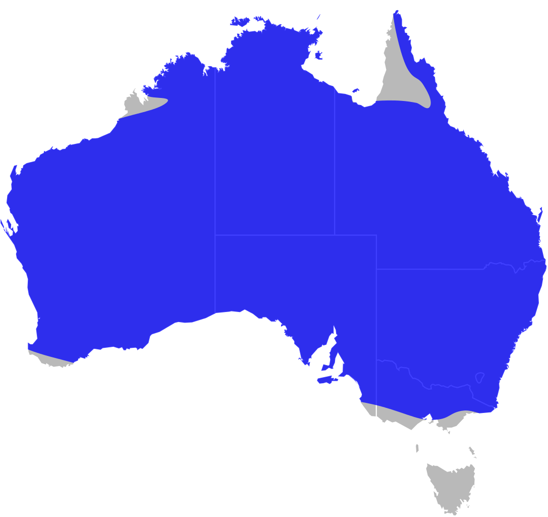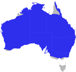 English: Distribution of the Scaly-foots (genus Pygopus), based on [1].