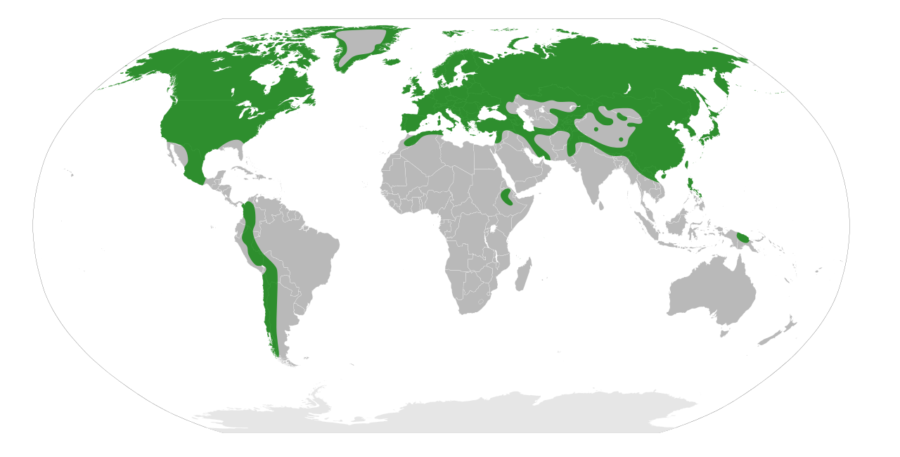 English: The range of the plant family Saxifragaceae, according to [1].