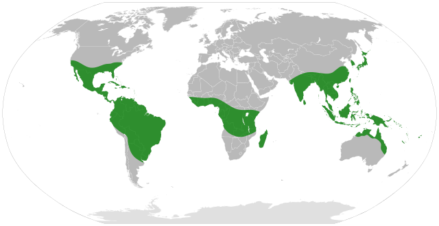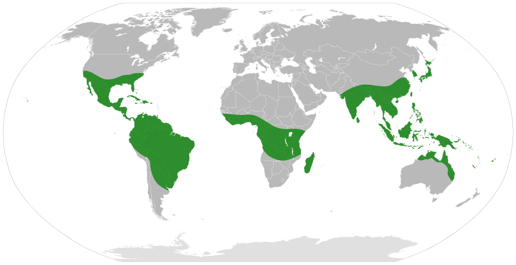 English: Distribution map of the Family Simaroubaceae (tropical/subtropical) flora — in the Sapindales Order of plants.