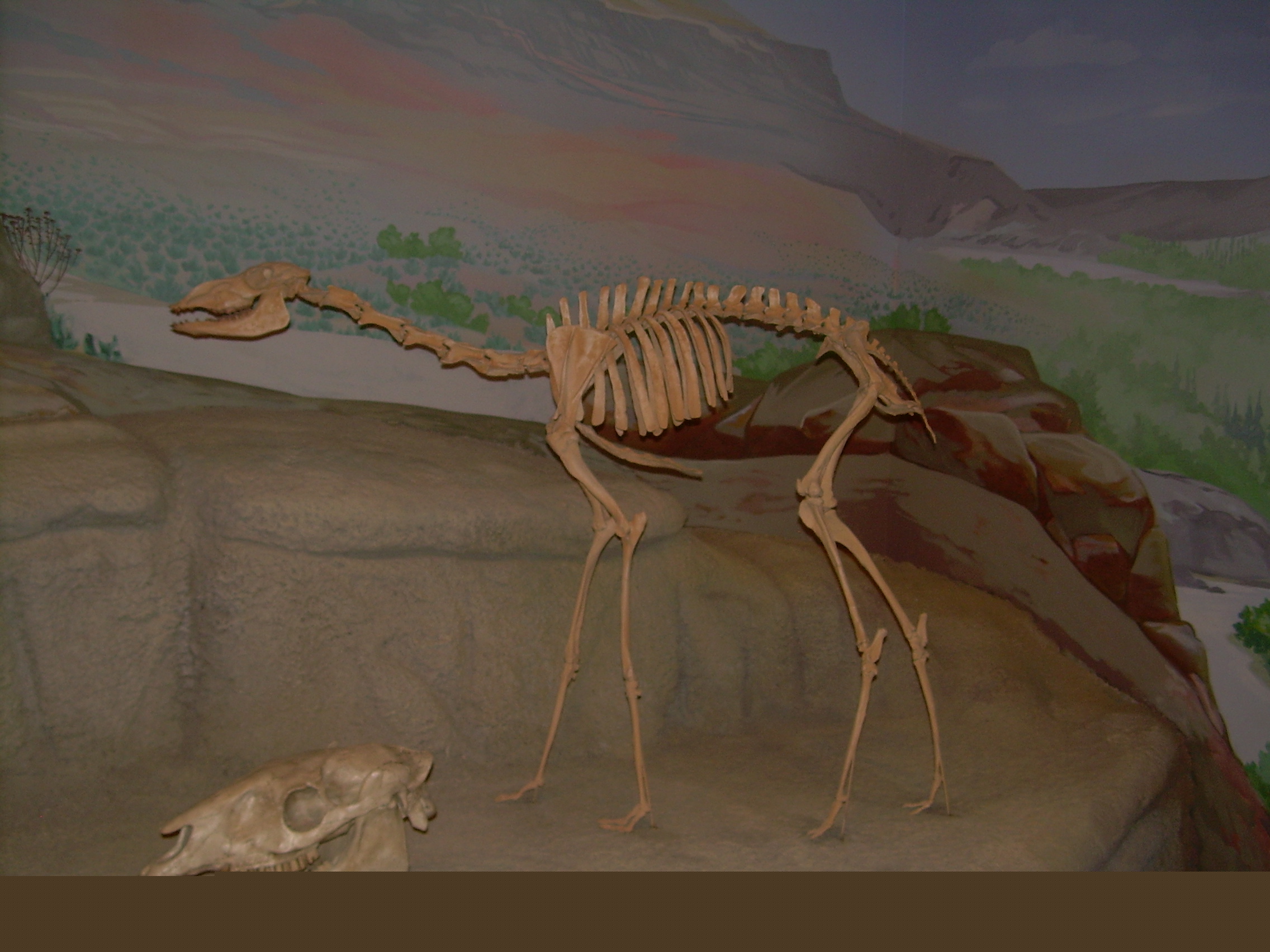 English: Photograph of a fossil cast of a Stenomylus skeleton taken at the North American Museum of Ancient Life.