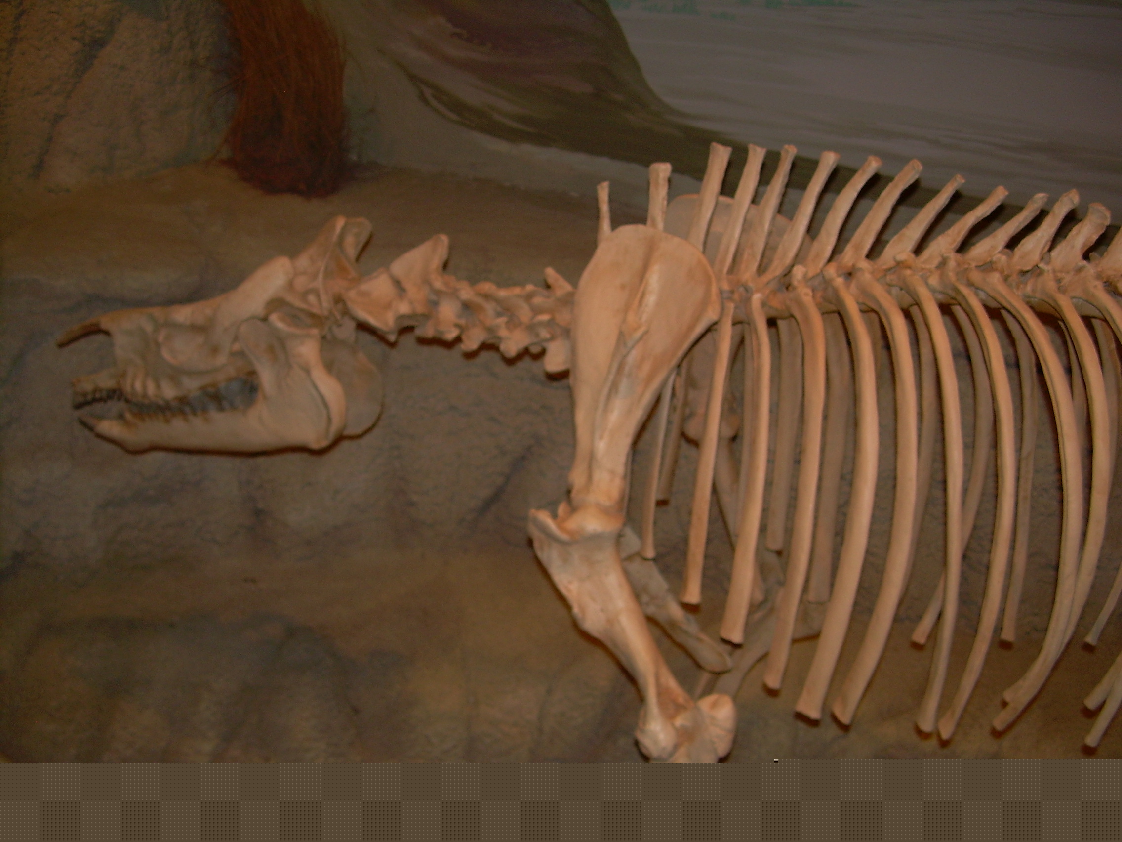 English: Photograph of a cast of a fossil Trigonias skeleton taken at the North American Museum of Ancient Life.