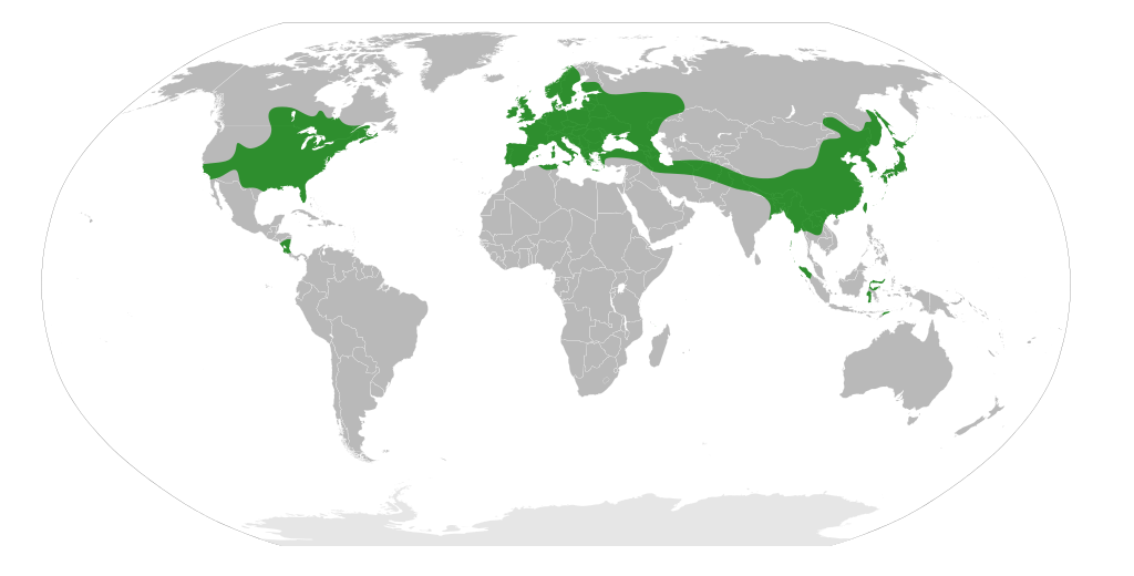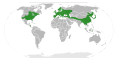 English: The range of the plant family Ulmaceae, according to [1].