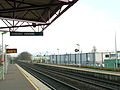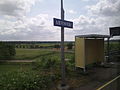 Vue depuis le quai en direction de Strasbourg, à la gare ferroviaire SNCF de Bollwiller, sur la ligne Strasbourg-Ville - Saint-Louis (Bâle)